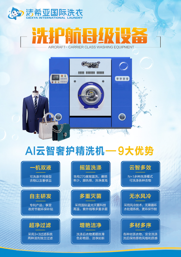 潔希亞每年都會投入大量資金用于洗護(hù)設(shè)備創(chuàng)新研發(fā)。成立短短幾年時間潔希亞洗滌設(shè)備獲得了國家專利認(rèn)證和國家機(jī)器質(zhì)量監(jiān)督檢測報告。潔希亞重磅推出全封閉全自動純凈100智能精洗機(jī)和全自動純清365精洗機(jī),解決了干洗行業(yè)的痛點,得到了業(yè)界的一致認(rèn)可和加盟商的好評。今年潔希亞15名研發(fā)人員歷時三年時間經(jīng)過上百次的測試和調(diào)整推出了行業(yè)領(lǐng)先的AI云智奢護(hù)精洗機(jī),擁有兩套獨立的洗脫烘凈一體系統(tǒng),一機(jī)多用??砂踩礈炻蛊?、鱷魚皮、貂絨等各種奢侈品面料,邊洗滌邊養(yǎng)護(hù),開啟了高端奢侈品洗護(hù)先河,震驚整個干洗行業(yè)。潔希亞的洗護(hù)設(shè)備遠(yuǎn)銷海外,設(shè)備品質(zhì)達(dá)到了出口標(biāo)準(zhǔn),獲得了海外客戶的一致認(rèn)可,樹立了中國品牌形象,提升了中國品牌價值。